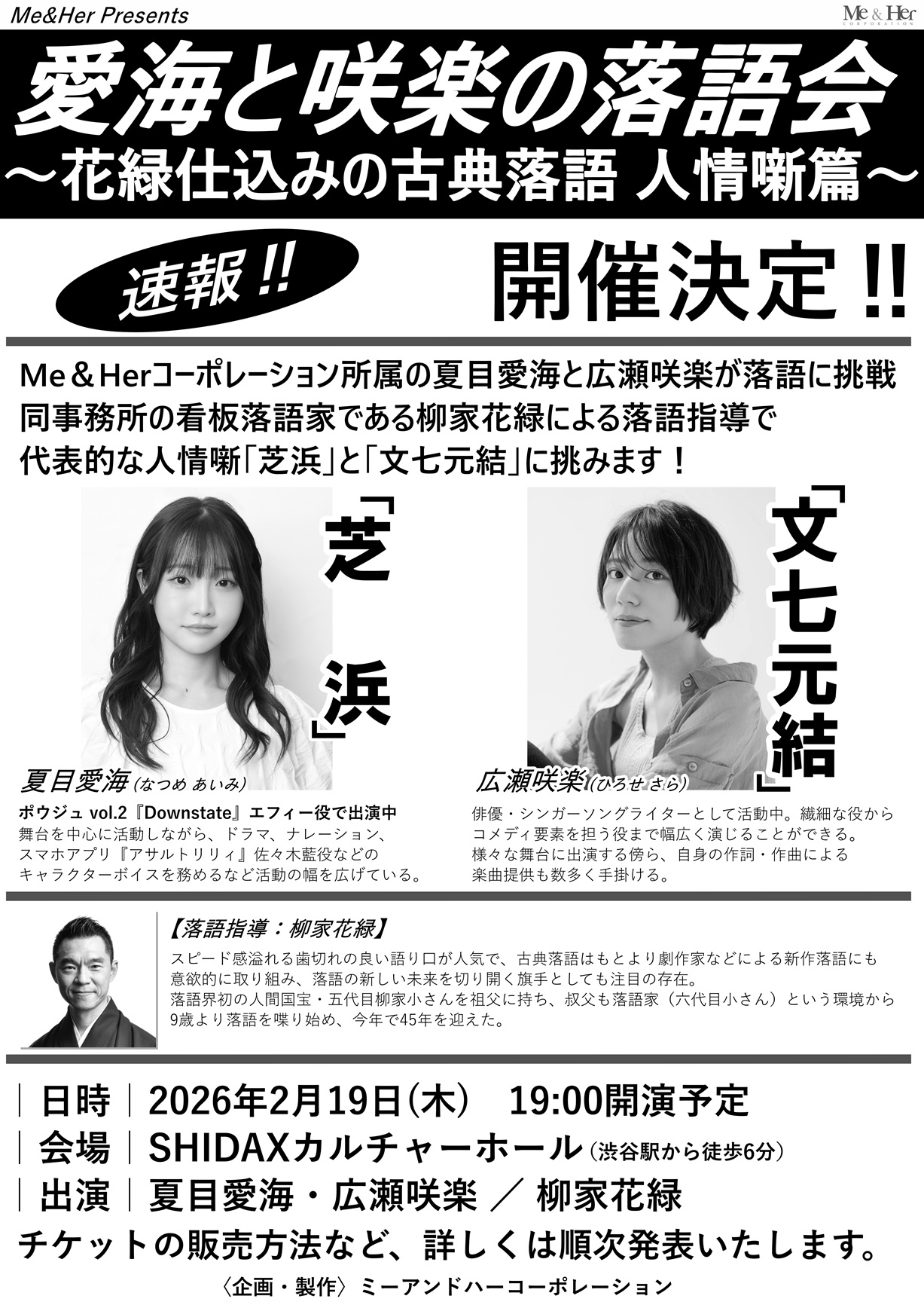 【落語会】『愛海と咲楽の落語会~花緑仕込みの古典落語 人情噺篇~』